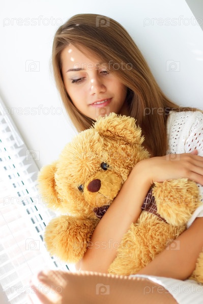 Девушка держит плюшевого мишку