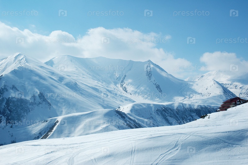 Высокие горы под снегом, зима