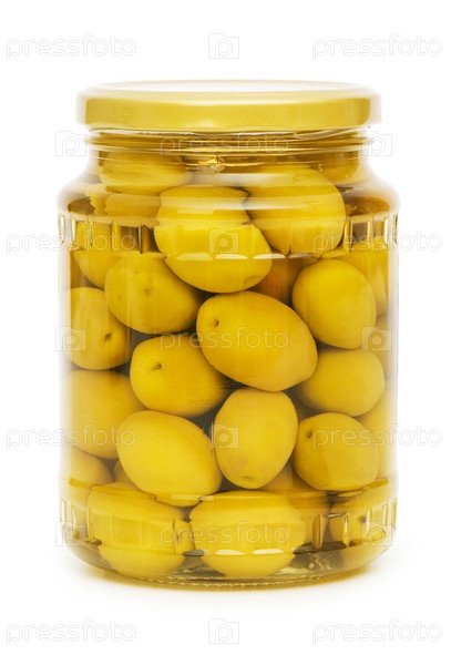 Маринованные оливки в стеклянной банке