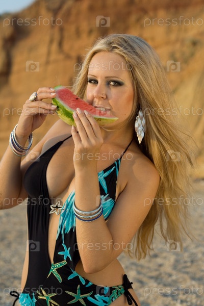 Соблазнительная девушка с арбузом