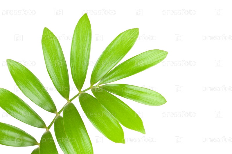 Ветка с зелеными листьями на белом фоне