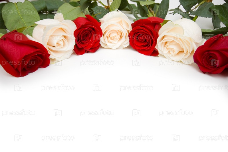 Розы расположены на белом фоне с кописпейсом