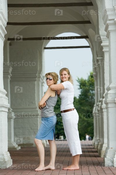 Две босые женщины стоят под аркой