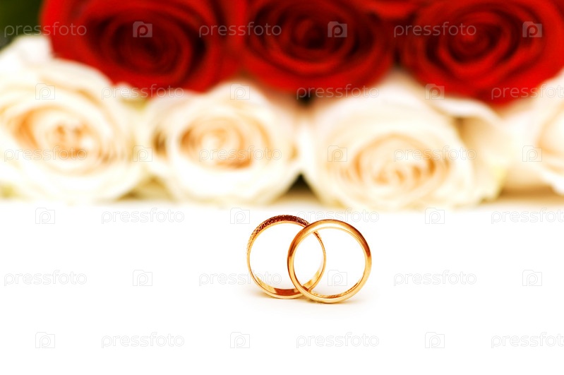 Свадебные кольца на фоне роз