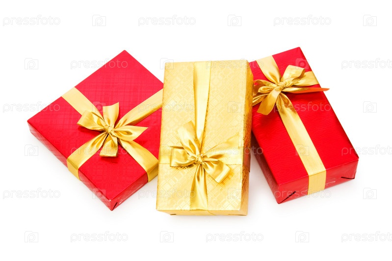 Три подарочные коробки на белом фоне