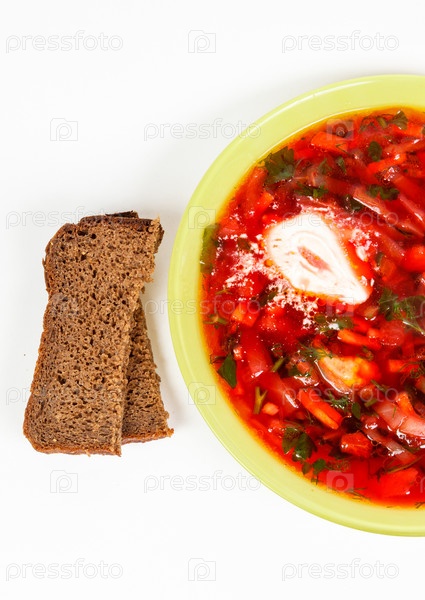 Ржаной хлеб и тарелка борща