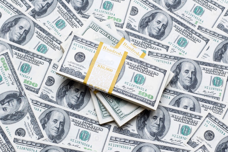 Куча долларов на денежном фоне
