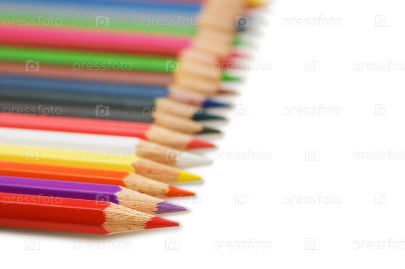 Ряд цветных карандашей на белом фоне