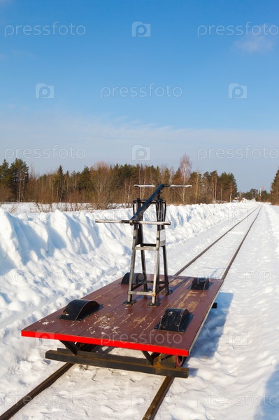 Тележка на узкой дорожке в снегу и голубое небо
