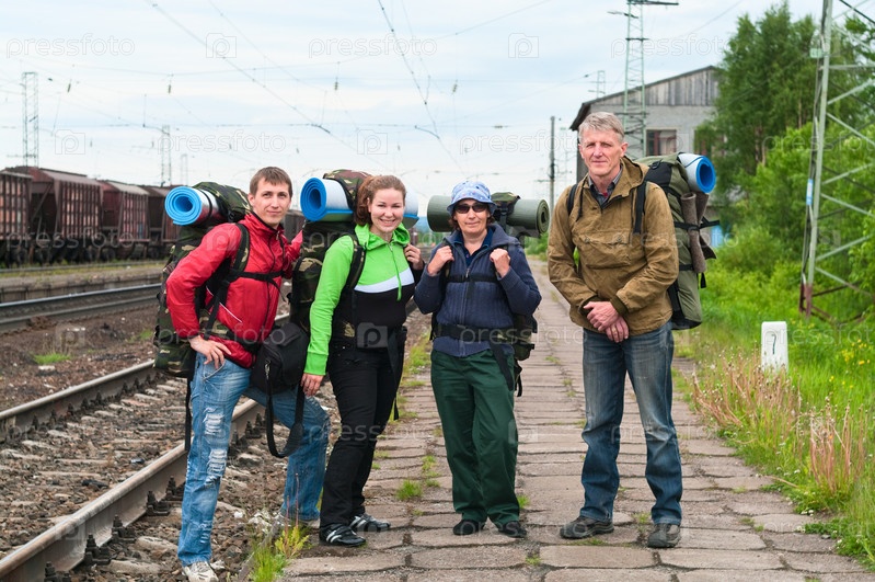 Группа туристов на железнодорожном вокзале