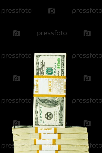 Пачки долларов на черном фоне