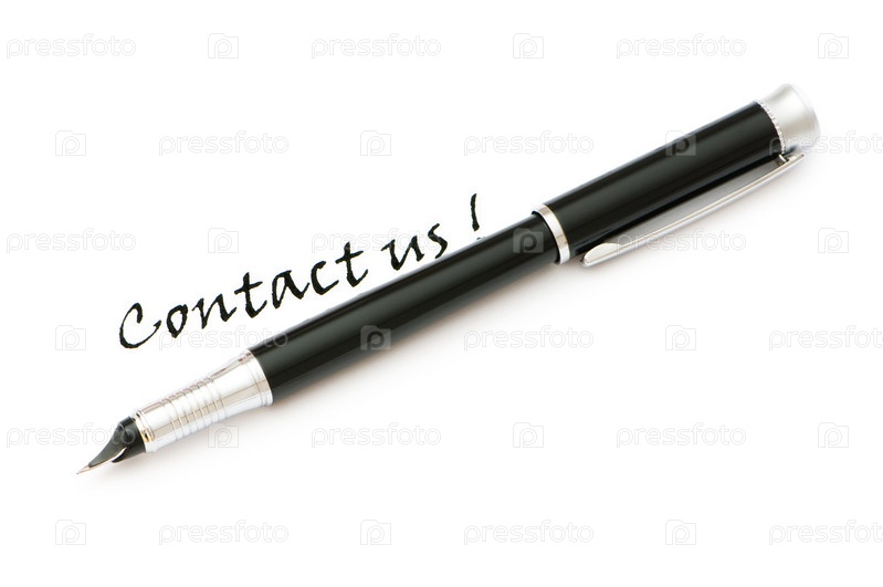 Ручка и сообщение о просьбе связаться на белом фоне