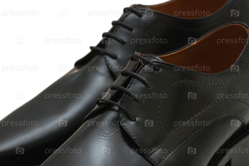 Черные мужские кожаные ботинки крупным планом, изолированные на белом фоне
