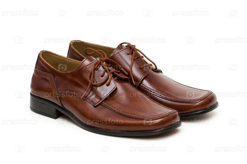 Коричневые мужские туфли на белом фоне