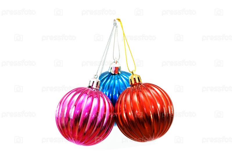 Новогодние украшения разных цветов на белом фоне
