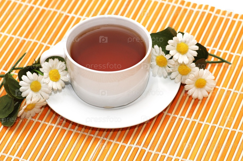 Чашка чая и цветы ромашки