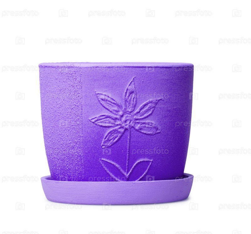 Фиолетовый горшок для цветов на белом фоне