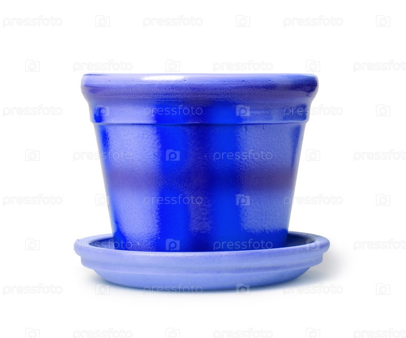 Синий горшок для цветов на белом фоне