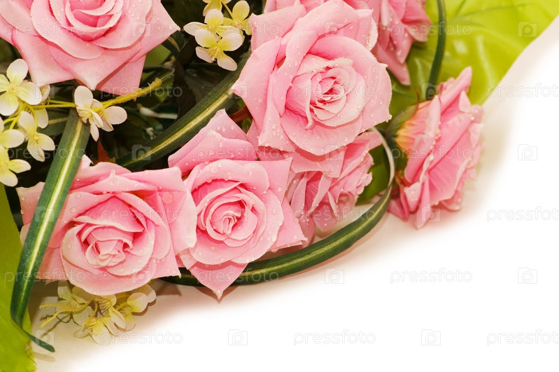 Букет роз с лентами на белом фоне
