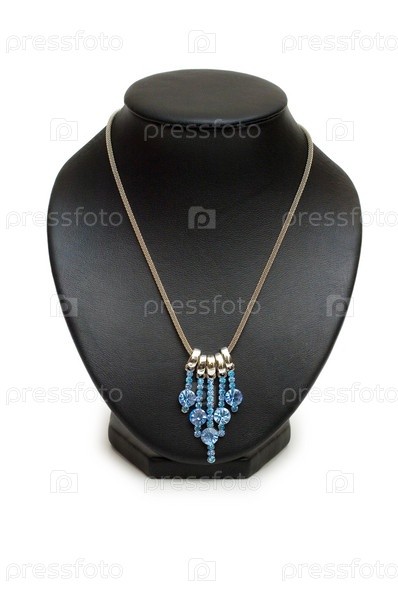 Колье с голубыми камнями на белом фоне