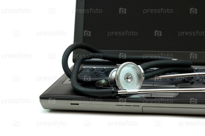 Стетоскоп и ноутбук на белом фоне