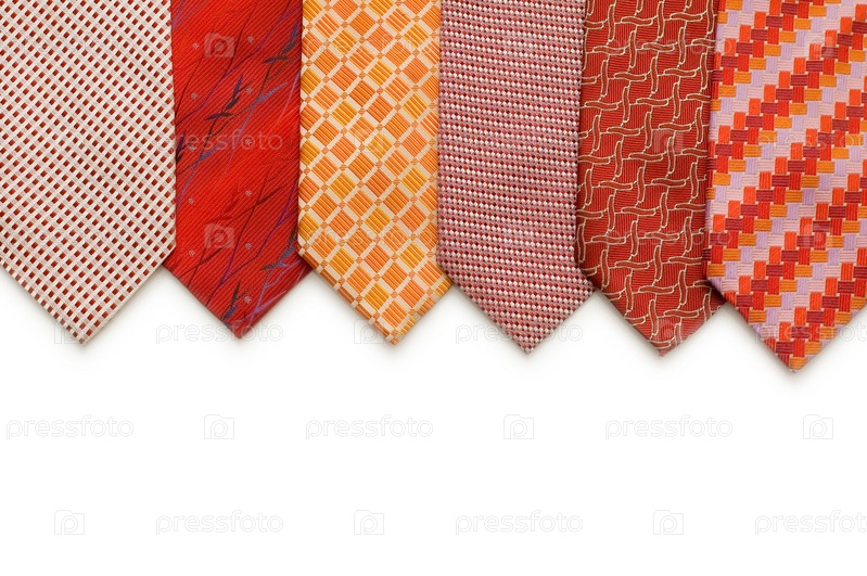 Галстуки, положенные в ряд, изолированные на белом фоне