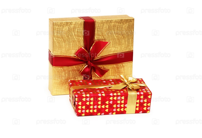 Подарочные коробки на белом фоне