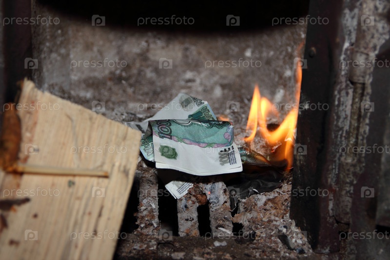 Деньги, горящие в печи