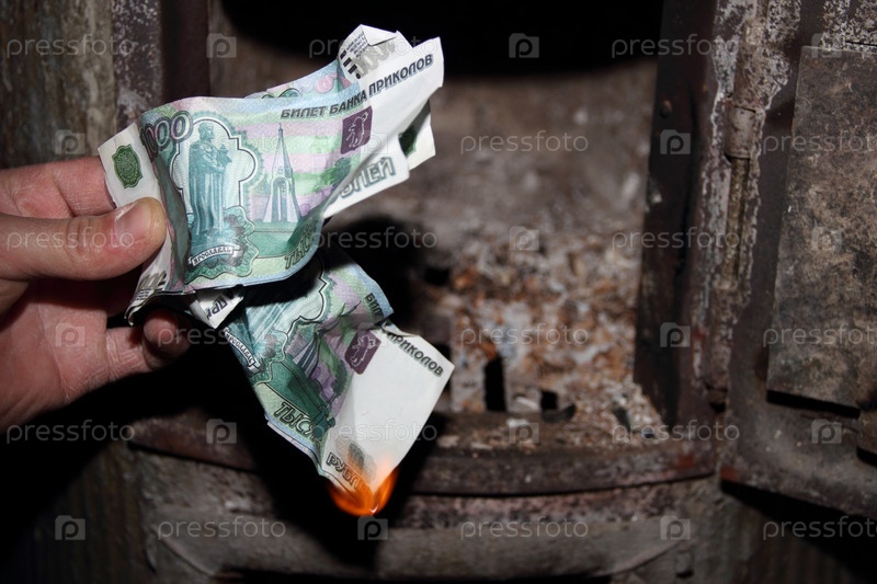 Деньги, горящие в печи