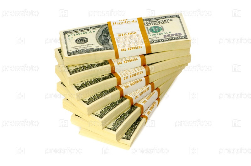 Пачка долларов на белом фоне