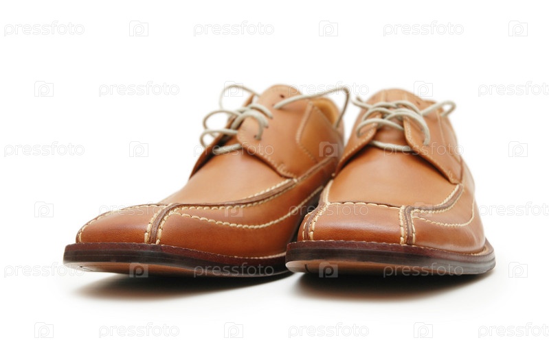 Коричневые мужские туфли на белом фоне
