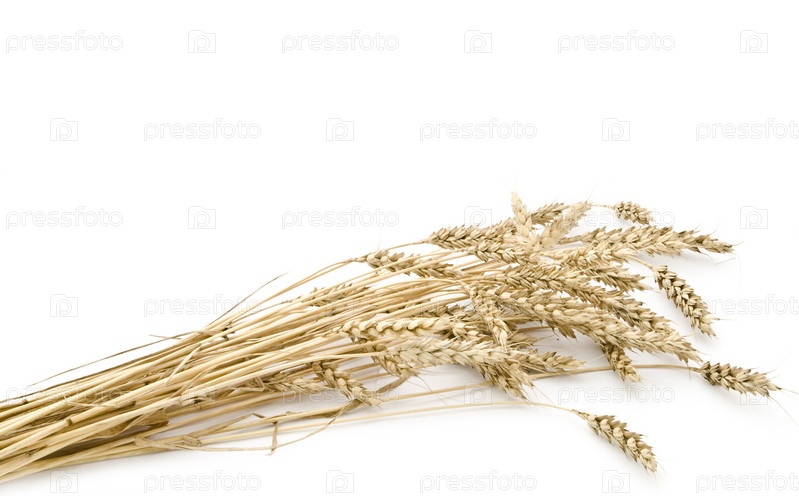 Сушеные колосья пшеницы на белом фоне