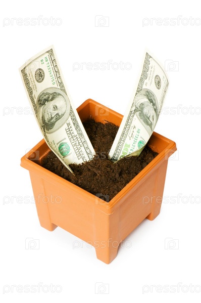 Купюры, растущие из цветочного горшка