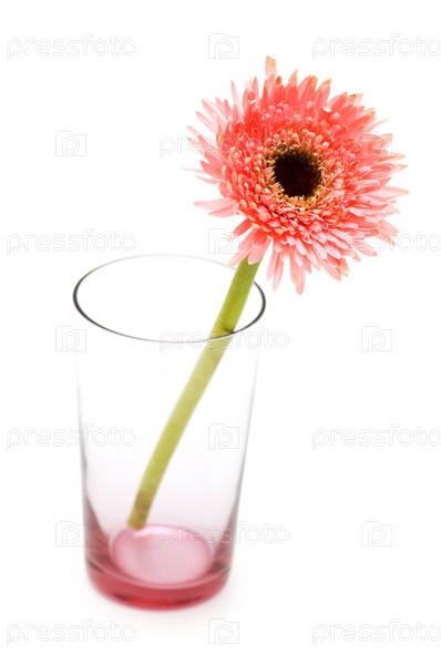 Красивый цветок в стакане на белом фоне
