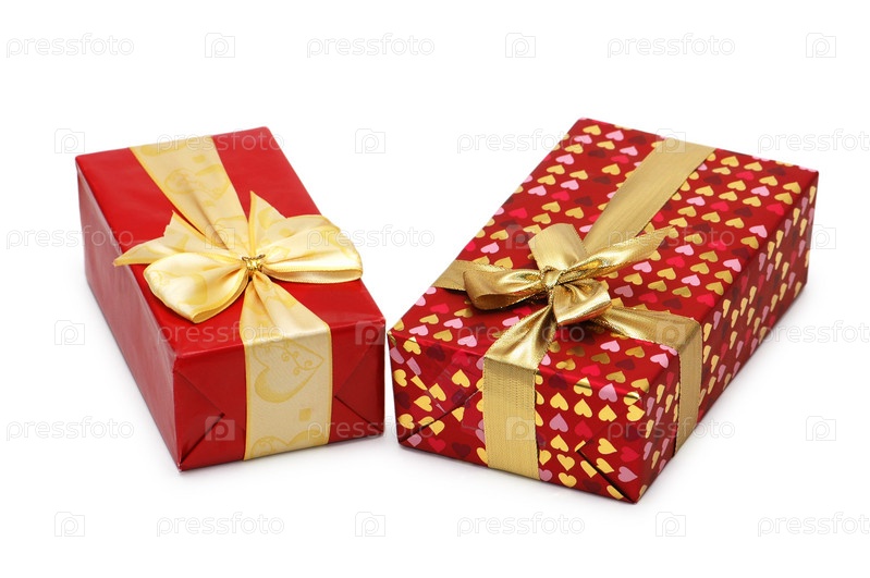 Коробки с подарками на белом фоне