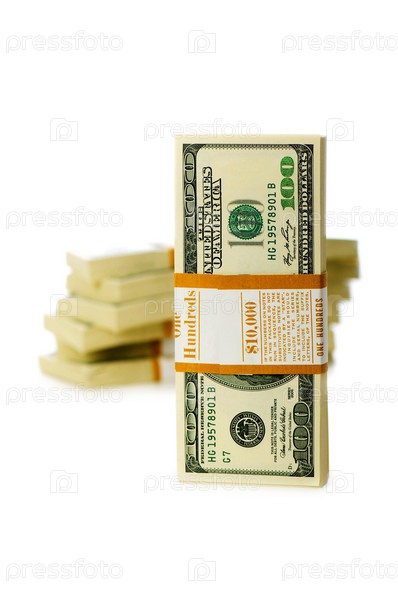 Пачки долларов, изолированные на белом
