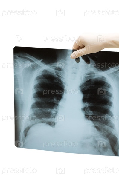 Рентгеновский снимок ребер человека на белом фоне