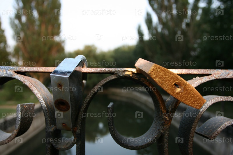 Замки на металлической решетке