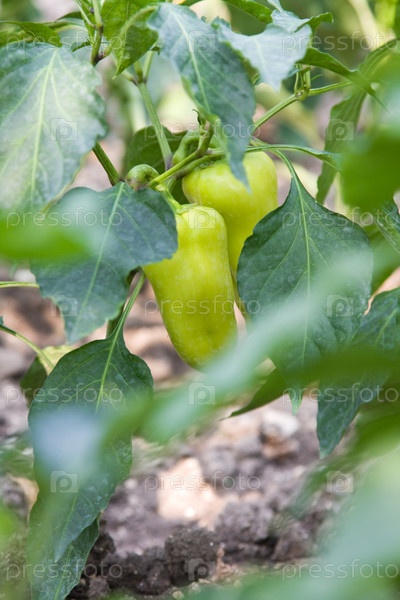 Зеленые перцы на грядке