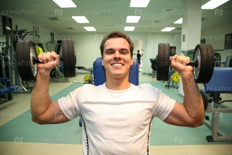Мужчина в тренажерном зале с гантеликами 3