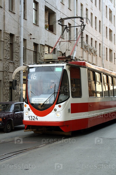 Городской трамвай на улице