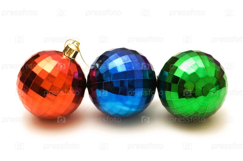 Три рождественских елочных шара, изолированных на белом фоне