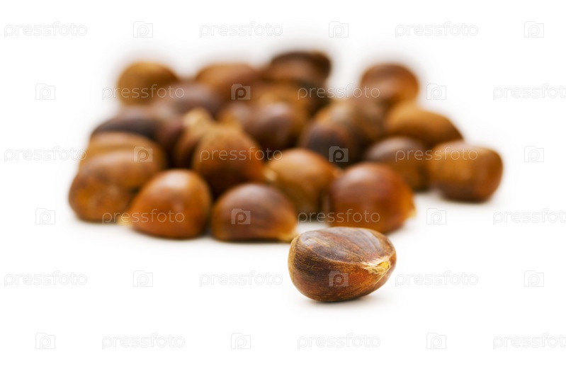 Спелые каштаны на белом фоне