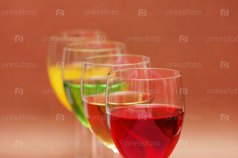 Бокалы с напитками разных цветов на бежевом фоне