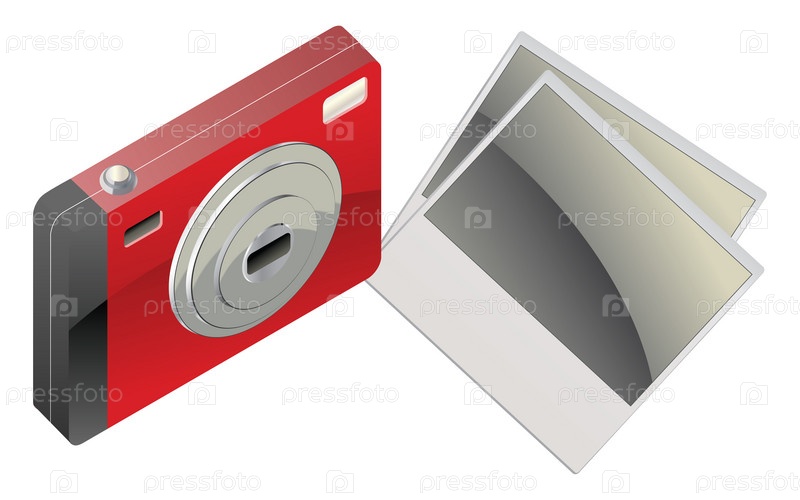 Красная цифровая камера и фотографии