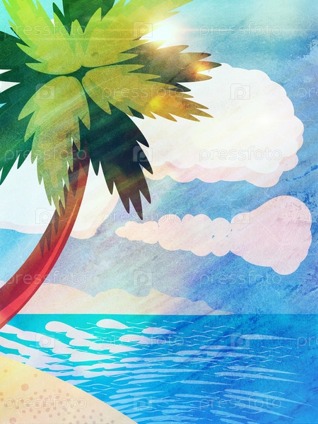 Нарисованный пляж с пальмами