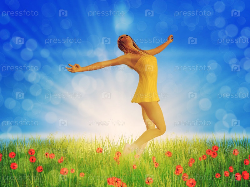 Девушка в желтом платье на поле