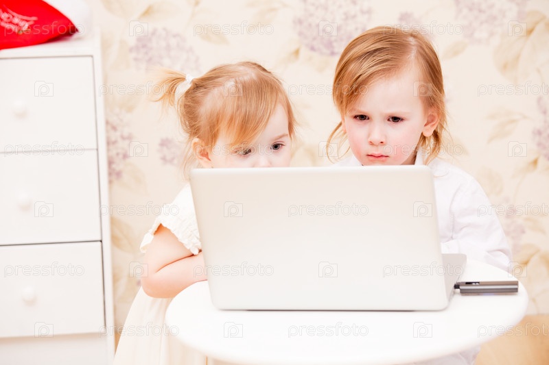 Дети с ноутбуком в помещении