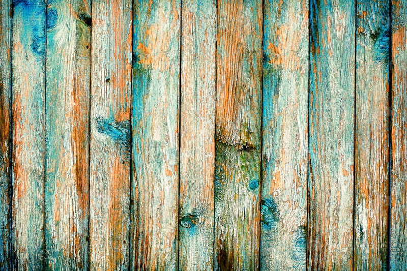 Деревенский деревянный забор с синей краской