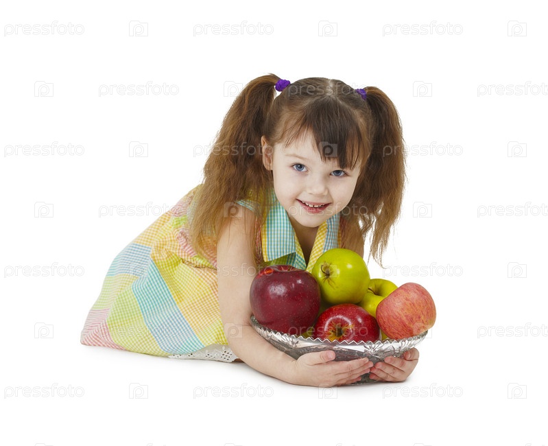 Маленькая девочка с тарелкой яблок